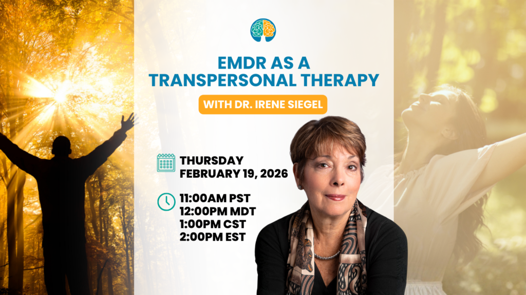 We would like to invite you to join us for a discussion on exploring innovative concepts in healing! Tune in for our free webinar on "EMDR as a Transpersonal Therapy" with Dr. Irene Siegel this coming February 2026! This webinar will focus on the integration of a transpersonal approach to EMDR therapy within the standard protocol and AIP model. Learn how to accelerate client transformation by understanding the importance of state changes within a shared field of energy and information. See you on February 2026!