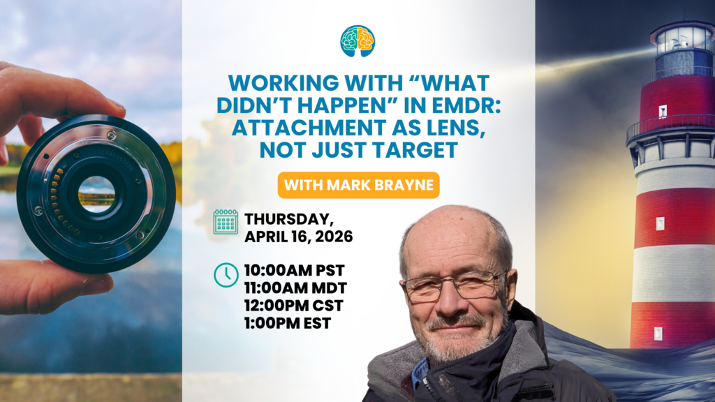 Explore how unmet attachment needs shape present-day symptoms in this one-hour EMDR therapy session on Working With “What Didn’t Happen” in EMDR: Attachment as Lens, Not Just Target with Mark Brayne. This topic reframes attachment as the organizing lens, introducing a two-track approach that addresses both relational wounds and event-based trauma. Learn how early misattunement lives in the nervous system and how to work with the “real child in the room” through presence, not pressure.