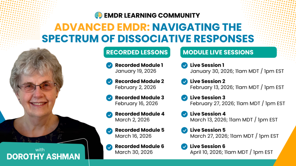 Join Dorothy Ashman, an expert with over 25 years of specialized experience in trauma and dissociation, including extensive EMDR practice with severe dissociative disorders. Drawing on her experience and training, including with Dr. Richard Kluft, Dorothy will guide you through understanding, recognizing, and safely working with dissociation in your EMDR practice.